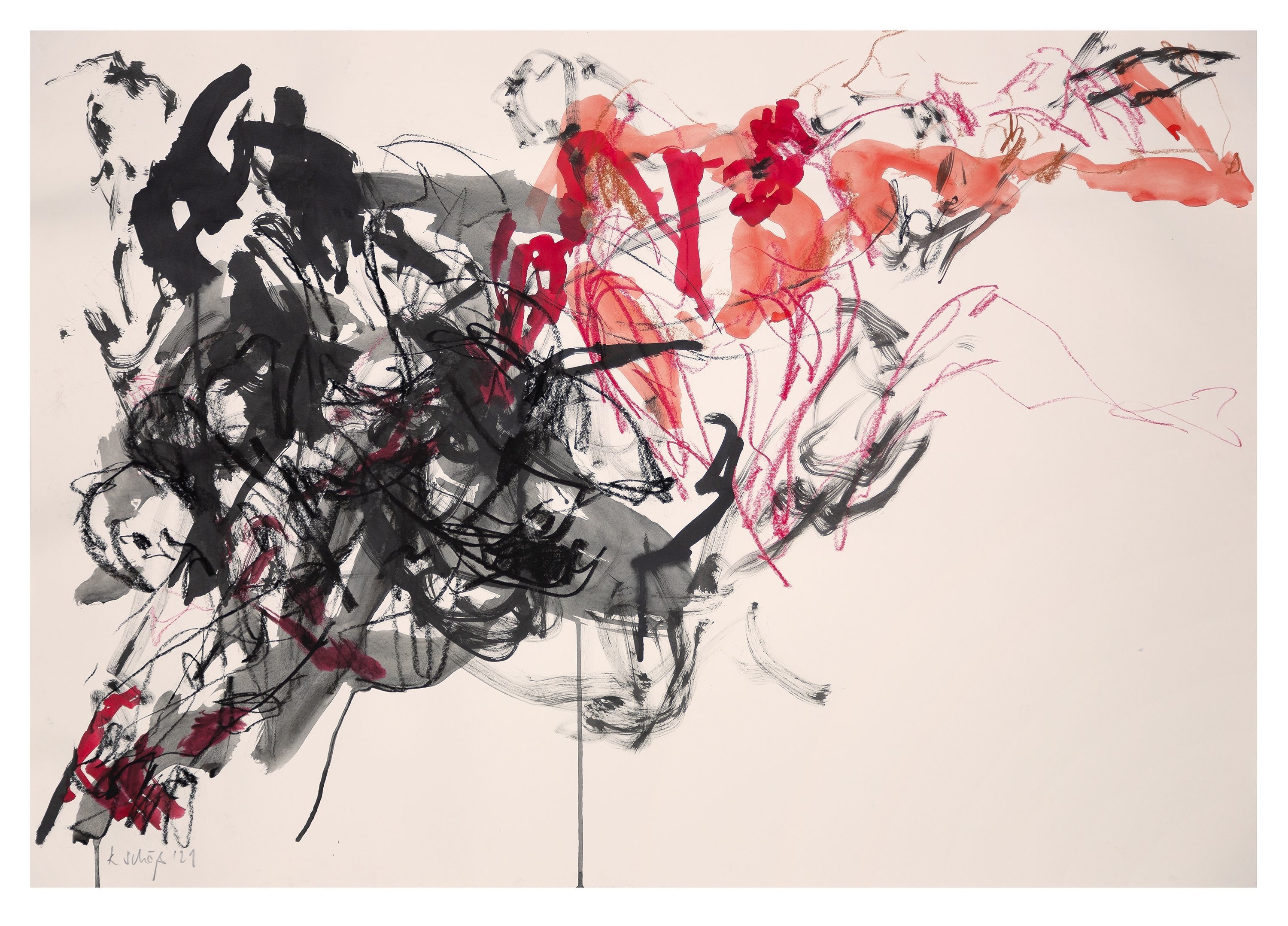Katrin Schöß arbeitet in der direkten Anschauung ihres Motivs, sei es eine Landschaft, ein Kopf oder eine Tanzbewegung. Die Landmarks bilden dann ein formales Grundgerüst für eine Zeichnung oder eine Plastik, anhand dessen Formen und Strukturen, Licht- und Schattenbereiche entdeckt und ausgearbeitet werden.