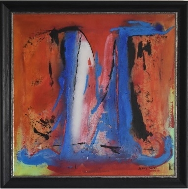 Jedes Bild ist eine Insel, es hat seine eigenen Regeln, Bedeutungen. Enrico de Vita geht beim Betreten der Insel, also beim Beginn des Malaktes nicht von einem festen Plan aus, auch nicht von einer bestimmten Bewegung; er setzt den ersten Farbtupfer spontan auf die Leinwand oder aufs Papier. In jeder weiteren Aktion nach dem ersten Tupfer wird auf die schon gesetzte Farbe direkt und intuitiv reagiert, und dabei schwankt der Künstler im Laufe der weiteren Arbeit zwischen Wiederholung, Weg-nehmen des Gesetzten oder Kontrastierung, was ihm in den Sinn kommt. Überschauen wir die Ausstellung, dann muss uns auffallen, dass ihre Spannweite von einfachen Farbflächen- Kompositionen bis zu solchen mit einem heftigen Durcheinander von Farben reicht. Achten wir dabei auf die Datierungen, Jahreszahlen, dann fällt uns auf, dass sie keine Linie von Fläche zu Gegenstand oder Geste ergeben, sondern dass der jeweilige spontane Beginn im Laufe der Arbeit am einzelnen Bild zu immer anderen Kompositionen führt. Ähnlichkeiten im Bildaufbau können entstehen.