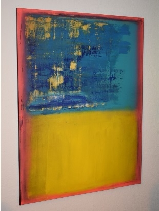 Beispiel: Die beiden einfach scheinenden Farbflächen- Kompositionen sind Ruhepunkte und nähern sich einfachen Landschaftsbildern, wenn nicht die Farben dem widersprechen oder in weiteren Bildern die Flächen in einfache gleichförmige Strukturen aufgelöst werden, die sich von landschaftlichen Vorstellungen wieder entfernen, eher eine textile Fläche assoziieren können.