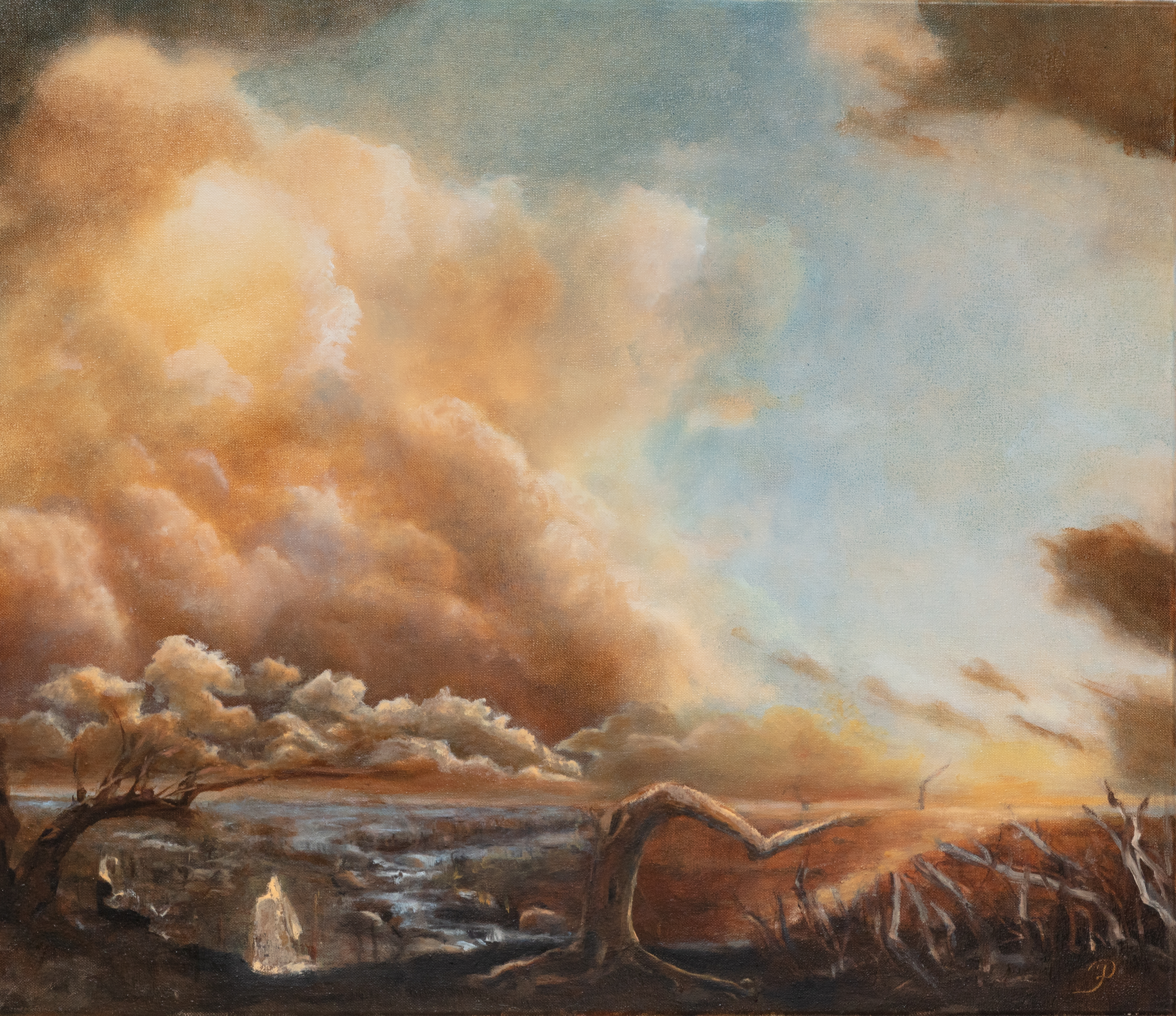 Für Petra Jaschinski sind die Ölfarben und ihr diffiziler dünner Auftrag auf eine Leinwand die Mittel, die sie erproben wollte. Und weil es zunächst keine Messlatte für eine qualitative Bewertung gegeben hatte, wurde die frühbarocke Malerei – aber auch die Motivik bis einschließlich der Romantik vor 200 Jahren – herangezogen. Und das Erstaunliche: Indem sie sich auf die Landschafts- und Himmelmotivik konzentrierte, blieb ihre Arbeit konkurrenzlos.