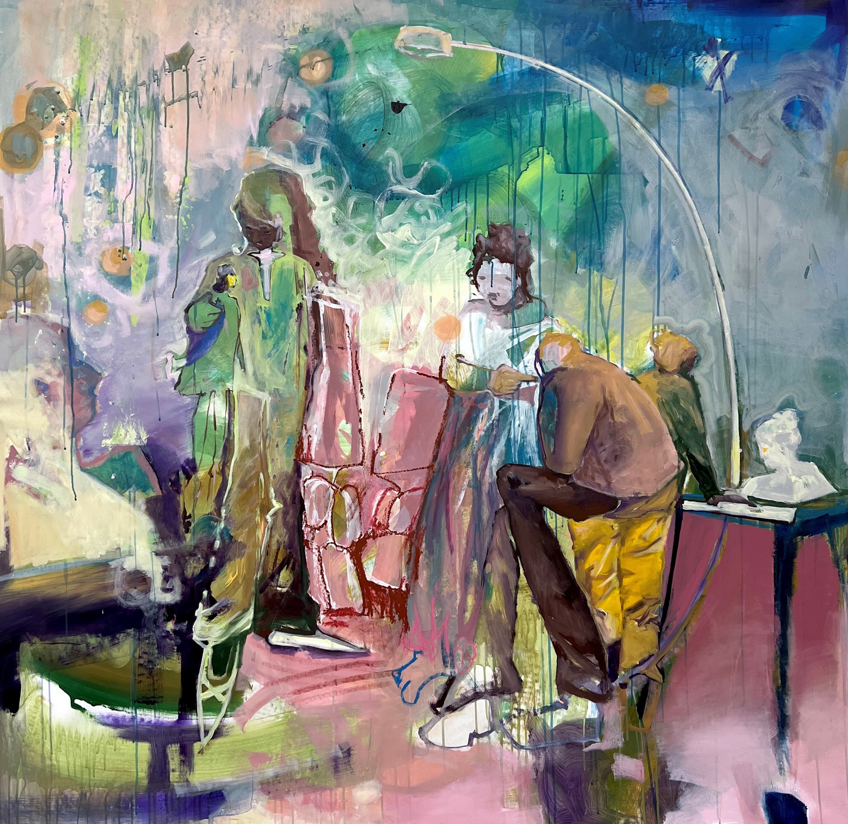 Die Ausstellung zeigt aktuelle Werke, die das soziale Miteinander in diesen herausfordernden Zeiten thematisieren: Wie gelingt die Balance zwischen Nähe und Rückzug? Was gibt uns Sicherheit? Mit Farben, Stiften und am Stein erkundet sie diese Fragen auf vielschichtige Weise, offen für Humor und überraschende Blickwinkel. Ihre Bilder zeichnen sich durch eine rätselhafte, unwirkliche und geheimnisvolle Atmosphäre aus, die durch das Zusammenspiel von malerischen Elementen, zeichnerischen Akzenten und Bildzitaten entsteht. Es sind Momentaufnahmen, die ohne Beurteilung Raum für eigene Interpretationen schaffen.